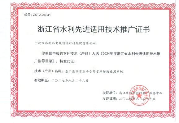 在產(chǎn)品創(chuàng)新方面,分別獲得第三屆寧波市專利創(chuàng)新大賽專利優(yōu)秀獎、“寧波市優(yōu)秀軟件產(chǎn)品”稱號、2024年“數(shù)據(jù)要素x”大賽浙江分賽獲優(yōu)勝獎,入選2024年度浙江省水利先進(jìn)適用技術(shù)推廣指導(dǎo)目錄、2024年度寧波市優(yōu)質(zhì)產(chǎn)品推薦目錄和2024年浙江省數(shù)字經(jīng)濟(jì)發(fā)展優(yōu)秀案例近20項(xiàng)。