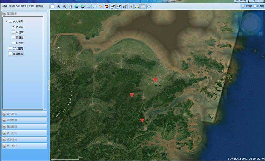 系統(tǒng)提供地圖基本操作功能、查詢檢索功能、統(tǒng)計功能以及地圖維護(hù)功能,實現(xiàn)水文站網(wǎng)屬性數(shù)據(jù)、空間數(shù)據(jù)的管理以及空間分析,為水文站網(wǎng)的規(guī)劃與管理提供了一體化應(yīng)用分析平臺。