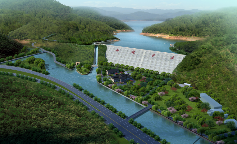 水庫樞紐工程主要由攔河壩、溢洪道、放空洞(導(dǎo)流洞改建)、引水發(fā)電洞、發(fā)電廠和升壓站、河道、道路及管理區(qū)等建筑物組成。水庫正常蓄水位65.00m,設(shè)計洪水位68.62m,校核洪水位70.71m,總庫容1365萬m3。大壩為砼面板堆石壩,壩頂高程為71.40m,防浪墻頂高程72.60m,最大壩高46.4m,壩頂寬度7.0m,長度306.4m。
